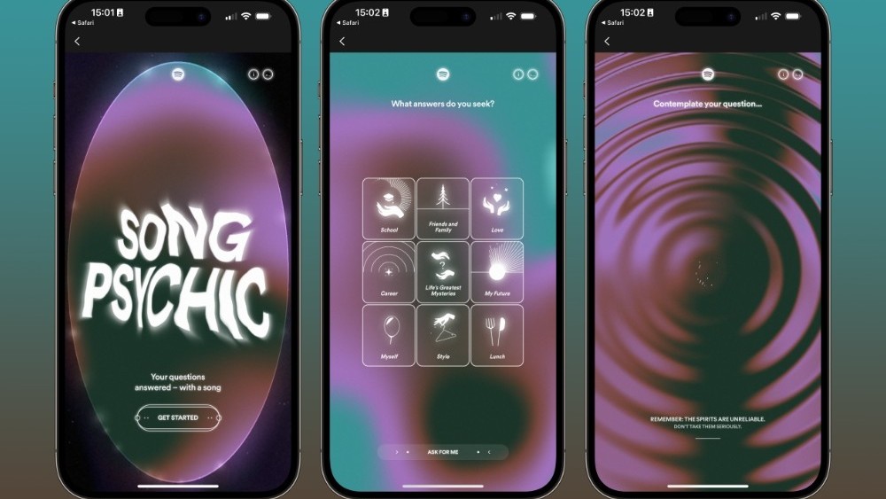 "Az élet tele van apró rejtélyekkel, és néha a legszórakoztatóbb módja annak, hogy megbirkózzunk velük, egy kis kozmikus útmutatás. A Spotify készen áll arra, hogy a megvilágosodás útjára vigyen a Song Psychic, egy új, misztikus zenei élmény segítségével.”