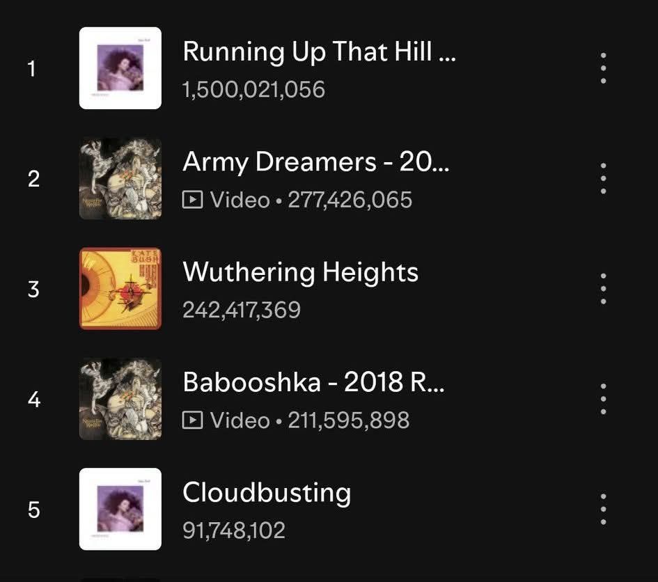 Running Up That Hill átlépte az 1,5 milliárd Spotify-lejátszást.