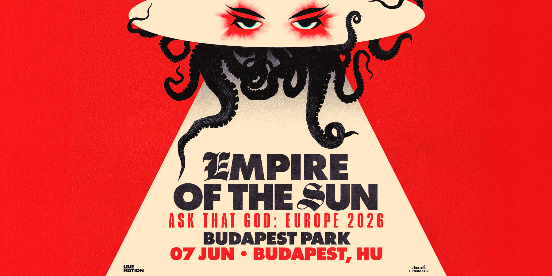 A koncertre elsőként az Empire of the Sun hivatalos rajongói klubjának tagjai válthatnak jegyet január 28-án, 9 órától (regisztráció itt érhető el: https://laylo.com/eots/m/askthatgod-eu), majd január 29-én 10 órától a regisztrált Live Nation tagok csatlakozhatnak az elővásárlási lehetséghez. A teljes körű jegyértékesítés január 30-án, 10 órakor indul a www.livenation.hu, a www.funcode.hu és a www.budapestpark.hu oldalakon. A rajongók limitált számban beszerezhetik az Empyreans Super VIP Meet & Greet élménycsomagot is, amely tartalmazza a koncertjegyet korai belépési lehetőséggel, exkluzív fotót és személyes találkozót Luke Steele-lel a koncert előtt, 1 limitált kiadású turnéposztert az Empire of the Sun által dedikálva, 1 exkluzív Empire of the Sun VIP ajándéktárgyat, VIP laminált belépőt, valamint korai merch vásárlási lehetőséget.